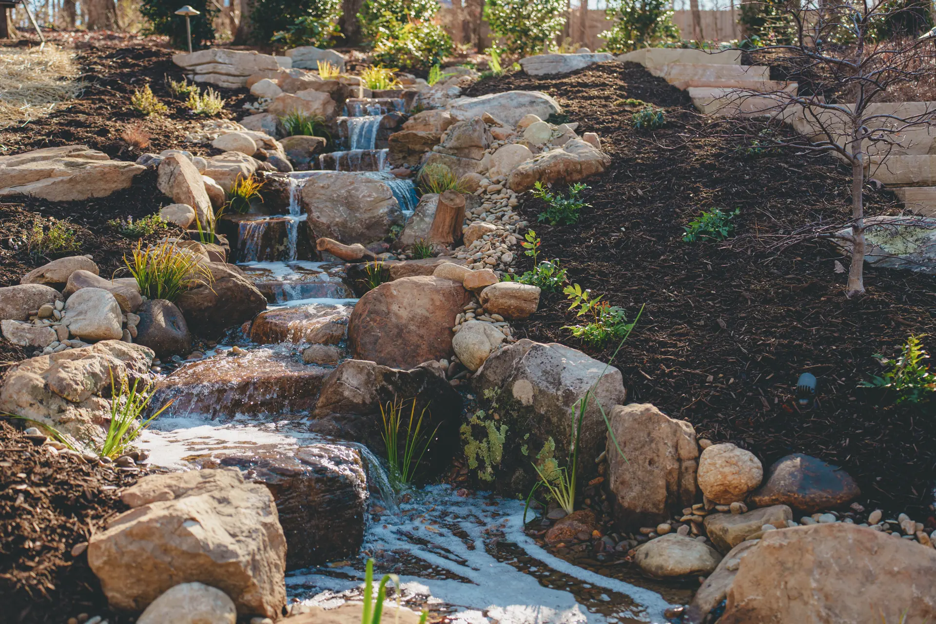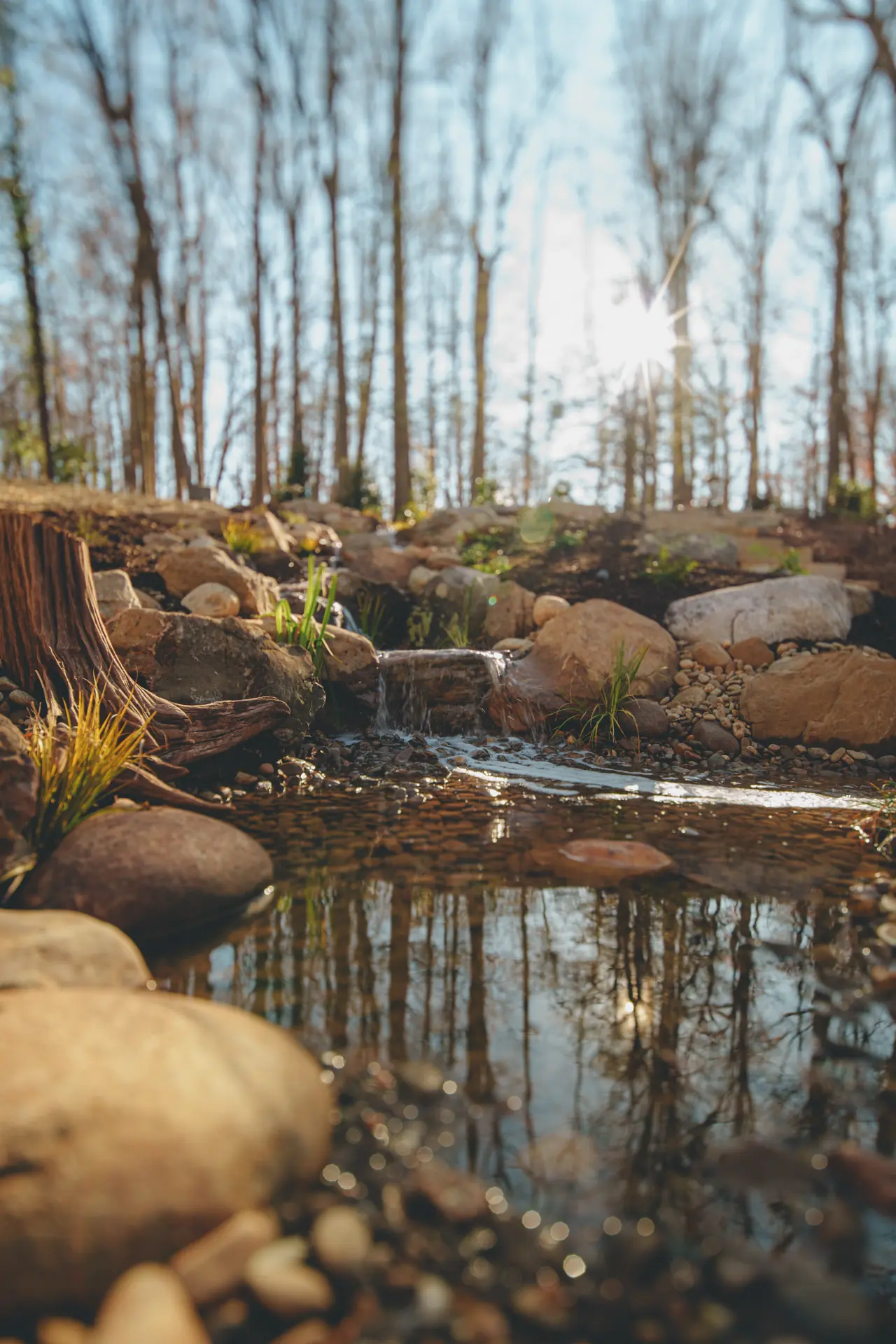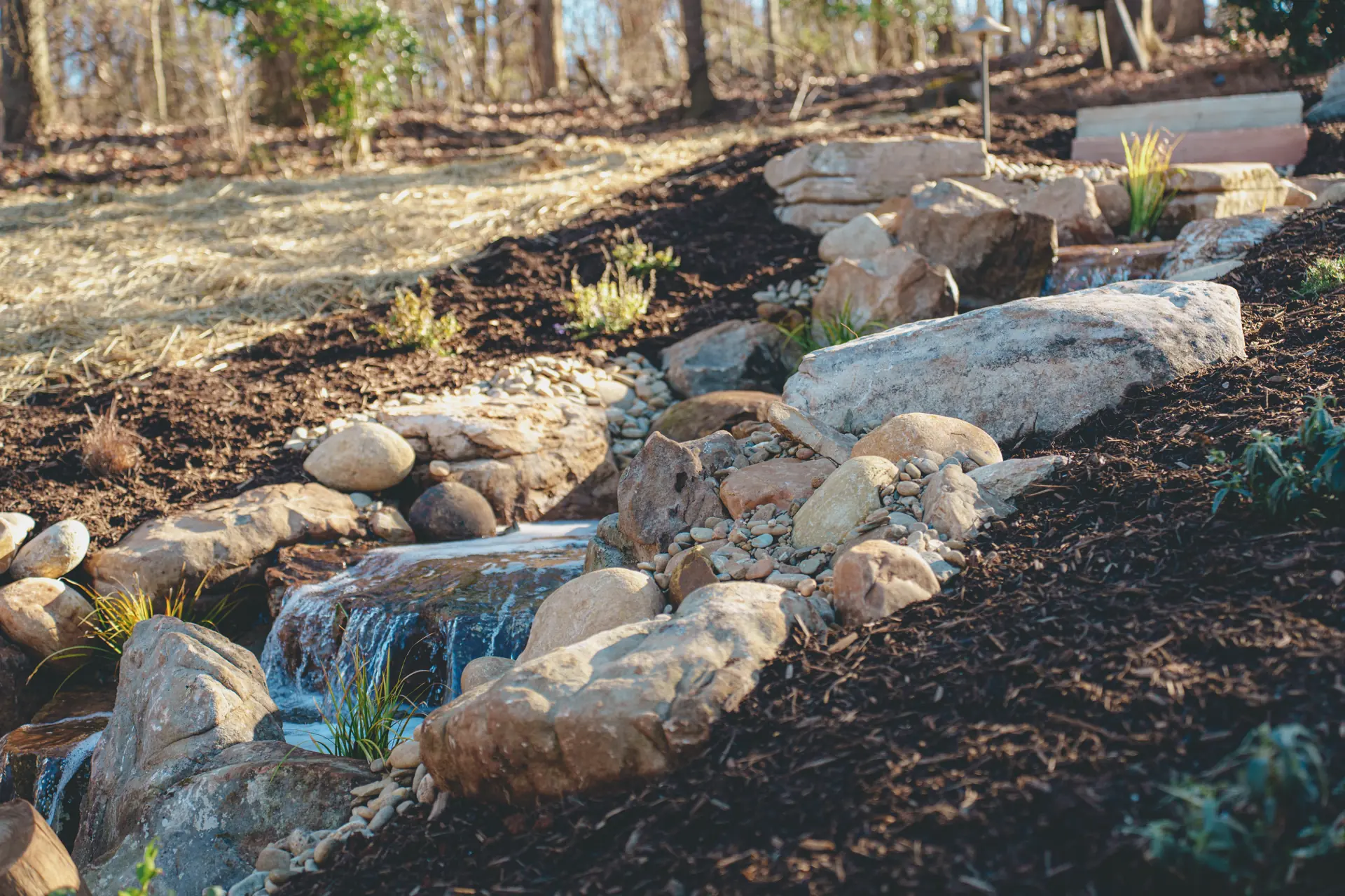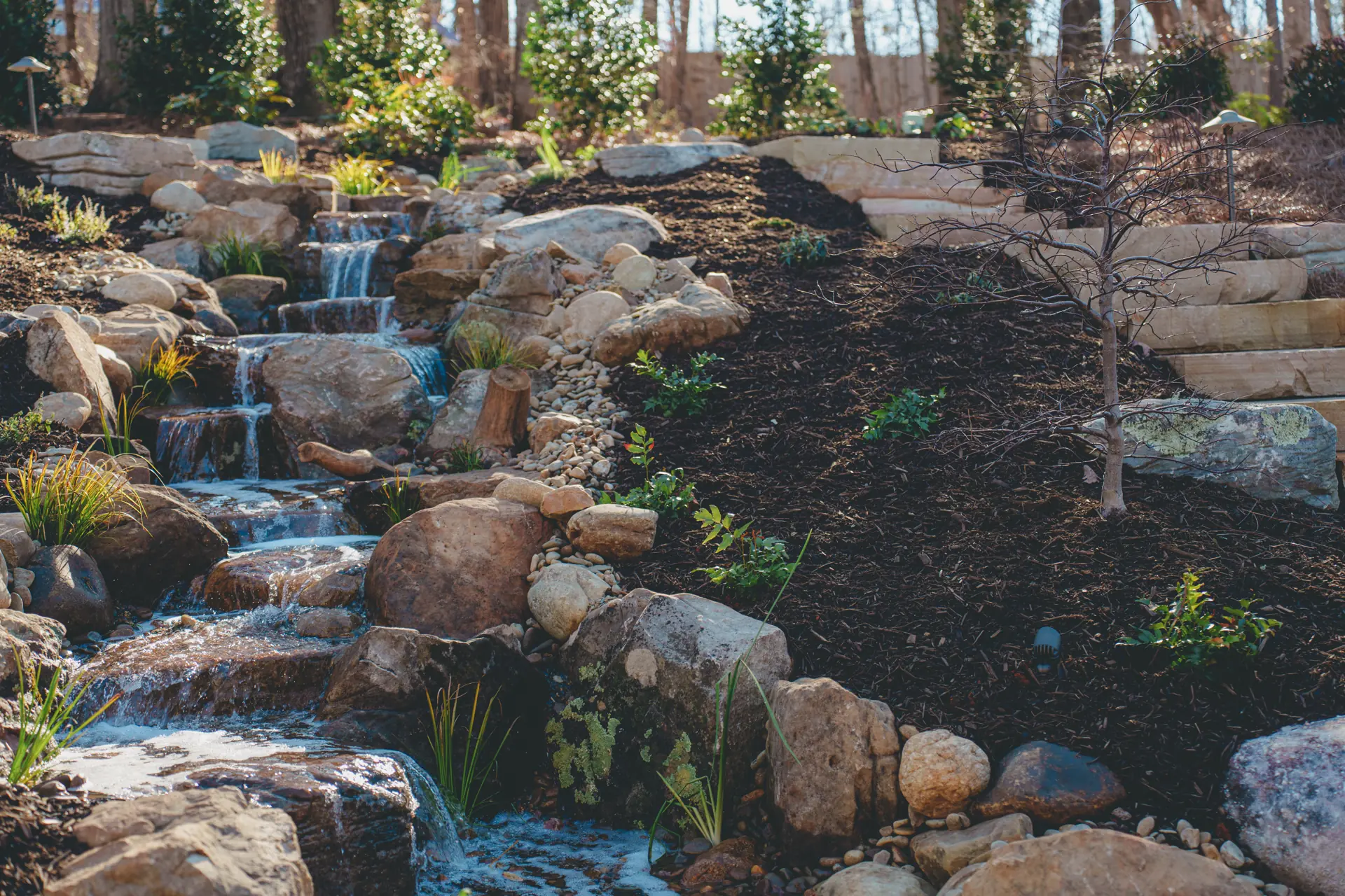 The finished landscape is both calming and engaging. The sound of moving water pulls you into the space, while the layered design encourages you to explore up the hillside.