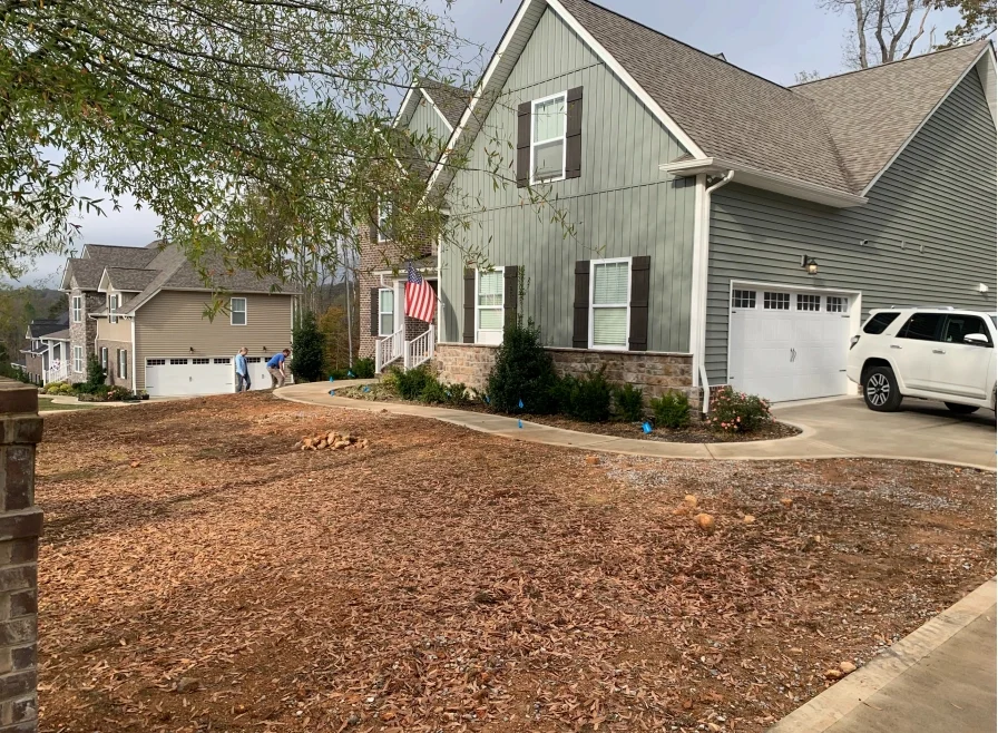 This project began with a common challenge in newly built homes. The front yard lacked curb appeal, grass struggled to grow, and compacted soil left behind weeds, rocks, and bare patches instead of a healthy lawn.