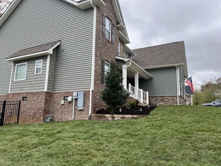 The transformation resulted in a front yard that feels complete and inviting. The retaining wall adds structure and definition, while the new sod creates a lush, green lawn that contrasts beautifully with the home’s exterior.