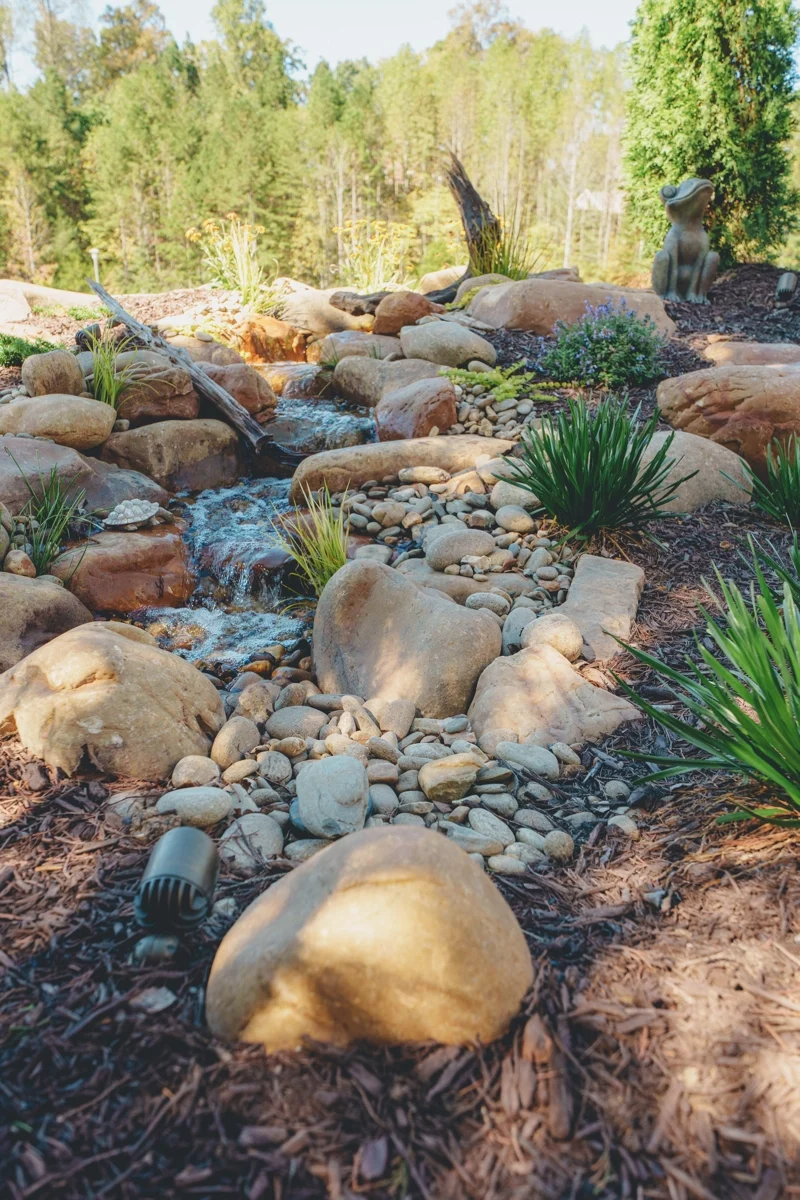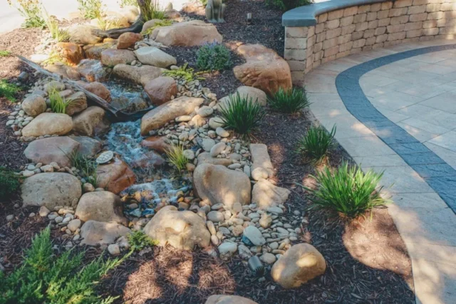 Whether you want a statement 8-foot cascade or a subtle stream along your front walkway, pondless water features adapt beautifully.