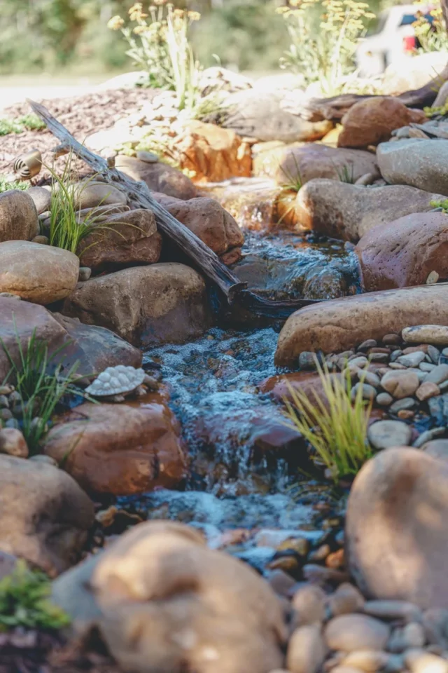 Many folks love the idea of flowing water in their yard — the soothing cascade, the gentle stream — but very few want the constant upkeep that ponds demand. Mossy liners, debris-clogged skimmers, fish care, algae, leaks… the features of a water garden can become the very chores it was meant to escape.